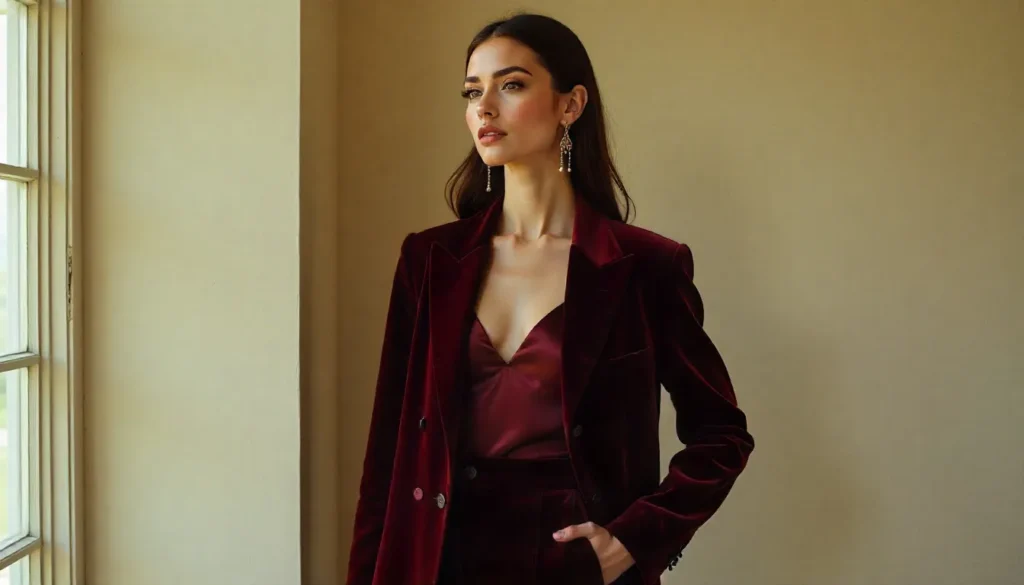 Imagine attending a charity gala at a downtown hotel. The invitation says black tie optional. A floor-length gown in a jewel tone paired with understated jewelry fits perfectly. For a creative black tie art fundraiser, a velvet jumpsuit with bold earrings and sleek hair feels modern and appropriate. At a winter museum gala, a long-sleeved velvet gown with a structured coat balances warmth and elegance.